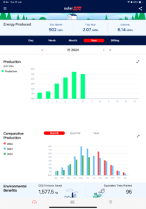 1. Cost Savings: One of the most significant benefits of solar power is the reduction in energy bills. Once the solar panels are installed, they generate free electricity from sunlight. Over time, the savings on energy costs can be substantial, often paying back the initial investment within a few years.  For example in the first 25 days of June we have generated a total of 484kWH and have exported 134Kwh back to the grid (at 12p per unit) using the rest to run the home during the day and top the battery up so that we have “free” power overnight.