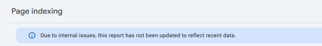 This message appears inside specific reports, not across your whole Search Console account. You might see it in performance reports, page indexing, or enhancements. The key thing to notice is that Google doesn’t say your site is broken. They say the report isn’t updating.