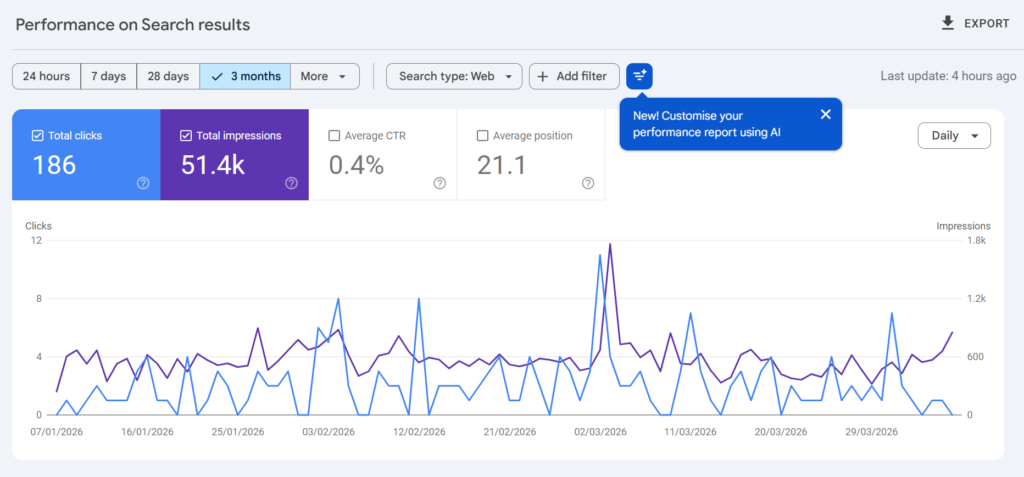 This is why many small business owners use impressions as a top-level indicator. It’s not the only metric that matters, but it helps you see whether your site is gaining or losing visibility.